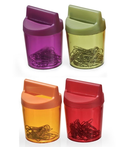 ПС03 Подставка для скрепок магнитная со скрепками АССОРТИ,тонированный ЛАЙМ,ВИШНЯ,СЛИВА,МАНГО