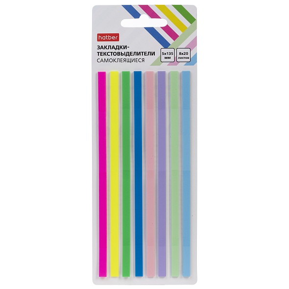 ZSp_090308 Закладки-текстовыделители -MIX- NEON прямоугольные Самоклеящ. Пластик 5Х135ММ 8 цв. 20л с европодвесом