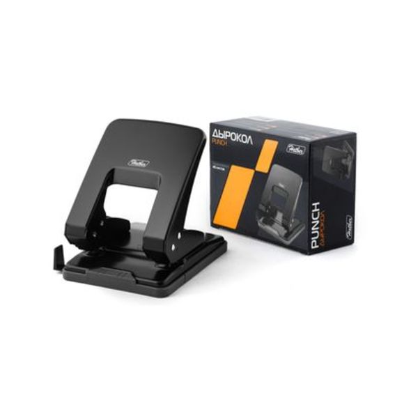 40DD_10101 Дырокол цельнометаллический Hatber 40л с линейкой Черный в картонном боксе