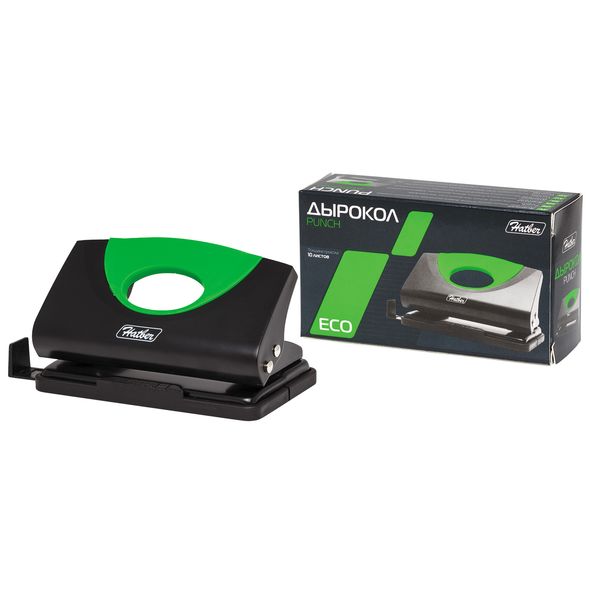 10DD Дырокол Пластиковый Hatber 10л с линейкой ECO Ассорти
