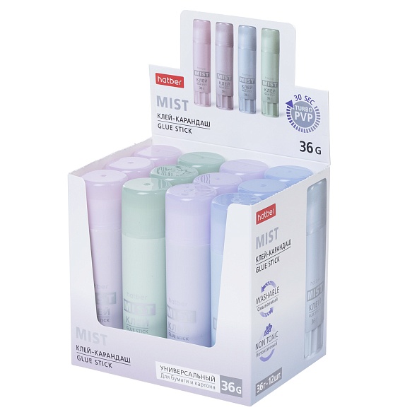GS_081213 Клей-Карандаш Hatber Mist 36гр в картонной Дисплей-витрине.