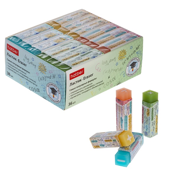 ER_090970 Ластик PVC Hatber Вспомнить все: -Математика- прямоугольный 36 шт в картонной Дисплей-витрине