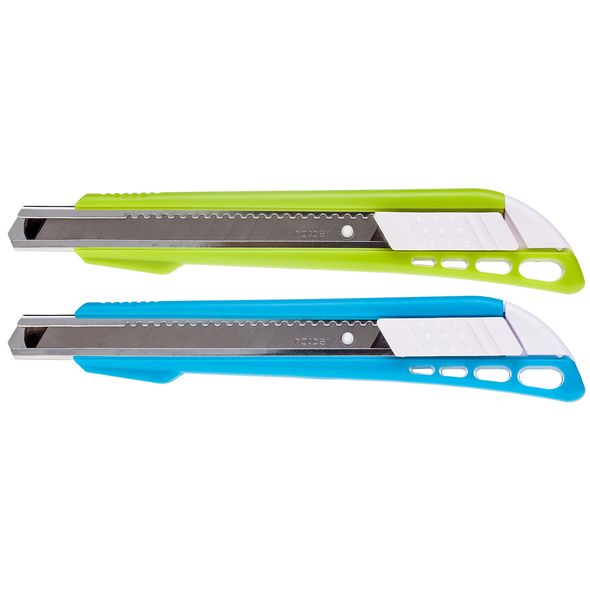 Канцелярский нож c системой автоматической фиксации лезвия AUTO-LOCK предназначен для работы с бумагой, плотным картоном, пленкой, тонким пластиком. Усиленная конструкция корпуса с металлическими направляющими гарантирует безопасность и уверенность в работе. За чёткость подачи лезвия ножа отвечает надёжный механизм с автоблокировкой. Оснащён лезвием шириной 9 мм с двойной заточкой. Упаковка: блистер с европодвесом.