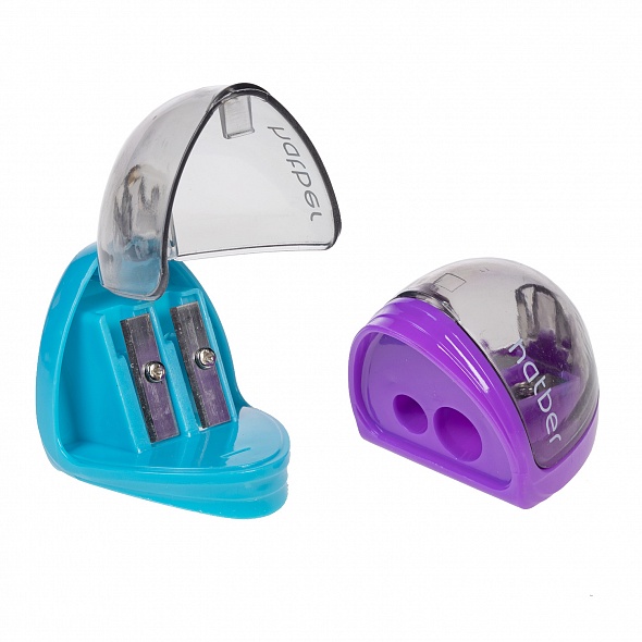 BS_078195 Точилка Hatber SPACE Пластиковая Цветная с контейнером с 2-мя отверстиями-Ассорти- 2 цв. 24шт в картонной Дисплей-витрине