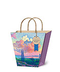 Матовая ламинация, выборочный УФ-лак, блёстки в лаке, детали-бирки, ручки из крученого шпагата, атласная лента.