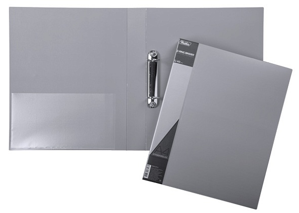 24AB4_00114 Папка Пластиковая Hatber на 2-х кольцах А4ф корешок 40 мм STANDARD Серая