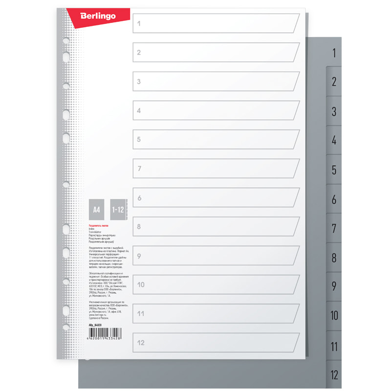 ARp_04020 Разделитель листов Berlingo А4 пластиковый 1-12
