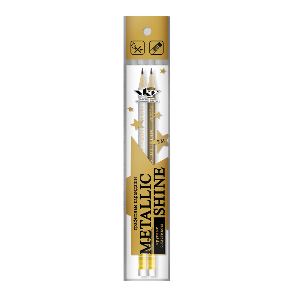 Карандаши круглой формы корпуса в золотом и серебряном цвете серии METALLIC SHINE. Стильный дизайн и цвет создают удивительный по красоте карандаш.