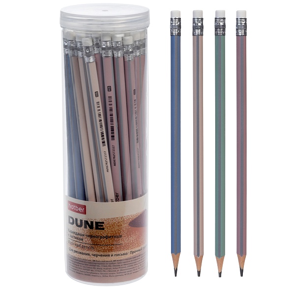 BL_089584 Карандаш чернографитн. Hatber Dune трехгран.корпус пластиковый 48шт. Ассорти "HB" с ластиком заточен. в пласт.тубе