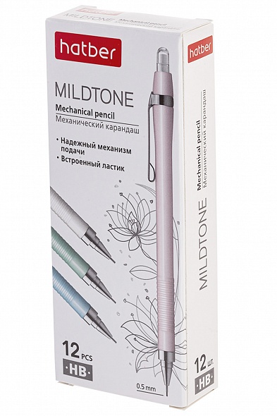 MP_060844 Карандаш механический Hatber 0,5мм с ластиком Mildtone 12шт. в картонной коробке -Ассорти-