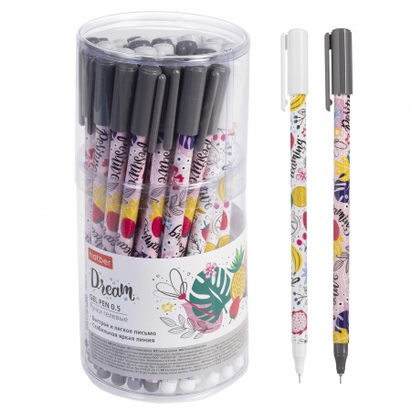 Ручка Hatber гелевая Dreams имеет водостойкие чернила насыщенного синего цвета. Диаметр шарика - 0,5 мм., за счет чего у ручки Dreams особо тонкое, мягкое и контролируемое письмо. Два дизайна в упаковке. Упаковка: 36 шт. в пластиковом стакане.
