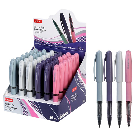 GP_086456 РУЧКА Hatber гелевая Pocket Черная 0,5мм 36 шт в карт. Мини-Дисплее