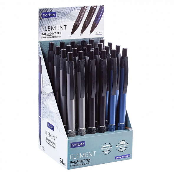 BP_067933 РУЧКА Hatber шариковая Автомат. Element 0,7мм 24шт в картонной Дисплей-витрине