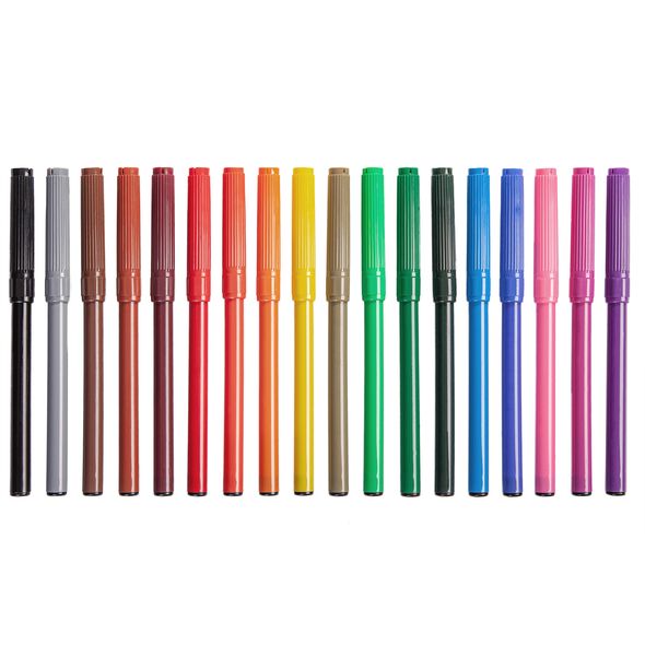 Фломастеры для рисования на бумаге и раскрашивания, подходят для детей младшего и школьного возраста. Набор фломастеров содержит 18 ярких насыщенных цветов. Чернила нетоксичны и безопасны для детей, легкосмываемые с рук и одежды. Изготовлены из первичного полипропилена, который предотвращает высыхание и не оставляет острых краёв при механическом повреждении корпуса. Специальная форма пишущего узла предотвращает его проваливание внутрь корпуса при сильном нажатии. Увеличенный размер пишущего узла: 2,3 мм. Увеличенная длина письма: 600м. Дополнительные грани на колпачке предотвращают случайное скатывание фломастера со стола. Данные фломастеры подходят для фломографа HATBER. Фломастеры упакованы в картонную коробку с петлей-европодвесом.