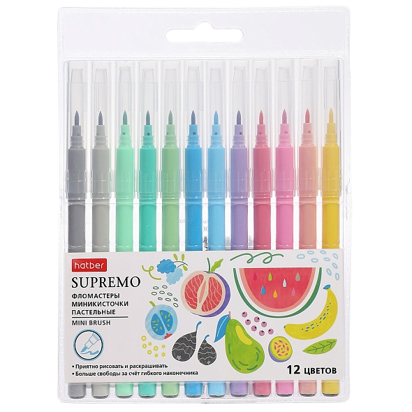 FP_087567 Фломастеры Hatber миникисть 12 цв. пастельные -Supremo- в блистере с европодвесом