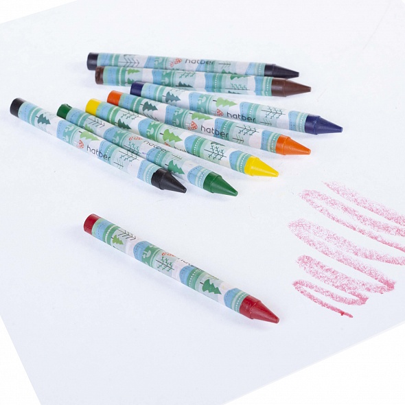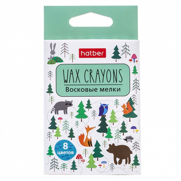CR_066288 Мелки восковые Hatber 8 цв. Deep Forest круглый корпус диаметр 9мм в карт.короб. с европодвесом
