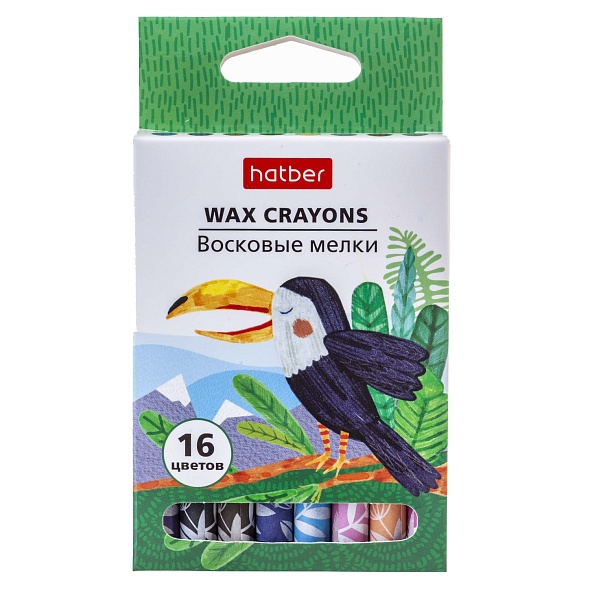 CR_066283 Мелки восковые Hatber 16 цв. Colora Птица Тукан круглый корпус диаметр 9мм в карт.короб. с европодвесом
