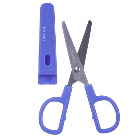 Ручки эргономичной формы. Чехол с линейкой для безопасного хранения. Длина ножниц: 13,5 см. Красочная картонная упаковка с европодвесом, которая позволяет оценить характеристики ножниц, не нарушая ее товарного вида.
