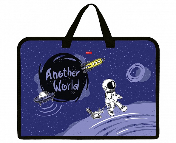 AMn_25059 Папка для тетрадей Пластиковая А4ф Hatber 1 отделение с РУЧКАМИ 245х340х35мм на молнии-Космические истории- в индив.упак.