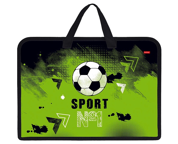 AMn_07076 Папка для тетрадей Пластиковая А4ф Hatber 1 отделение с РУЧКАМИ 245х340х35мм на молнии-Мир футбола- в индив.упак.