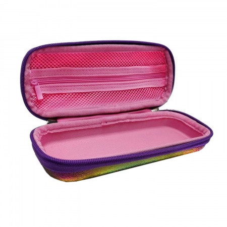 Каркасный пенал на молнии. Выполнен из современного пористого EVA материала с голографическим покрытием. Внутри вместительное отделение и сетчатый карман на молнии. Пенал возможно использовать как футляр для очков. В дополнение к пеналу можно приобрести мешок для обуви из голографического материала такого же цвета. Упаковка пластиковый бокс с европодвесом. Размер 215х90х53мм.