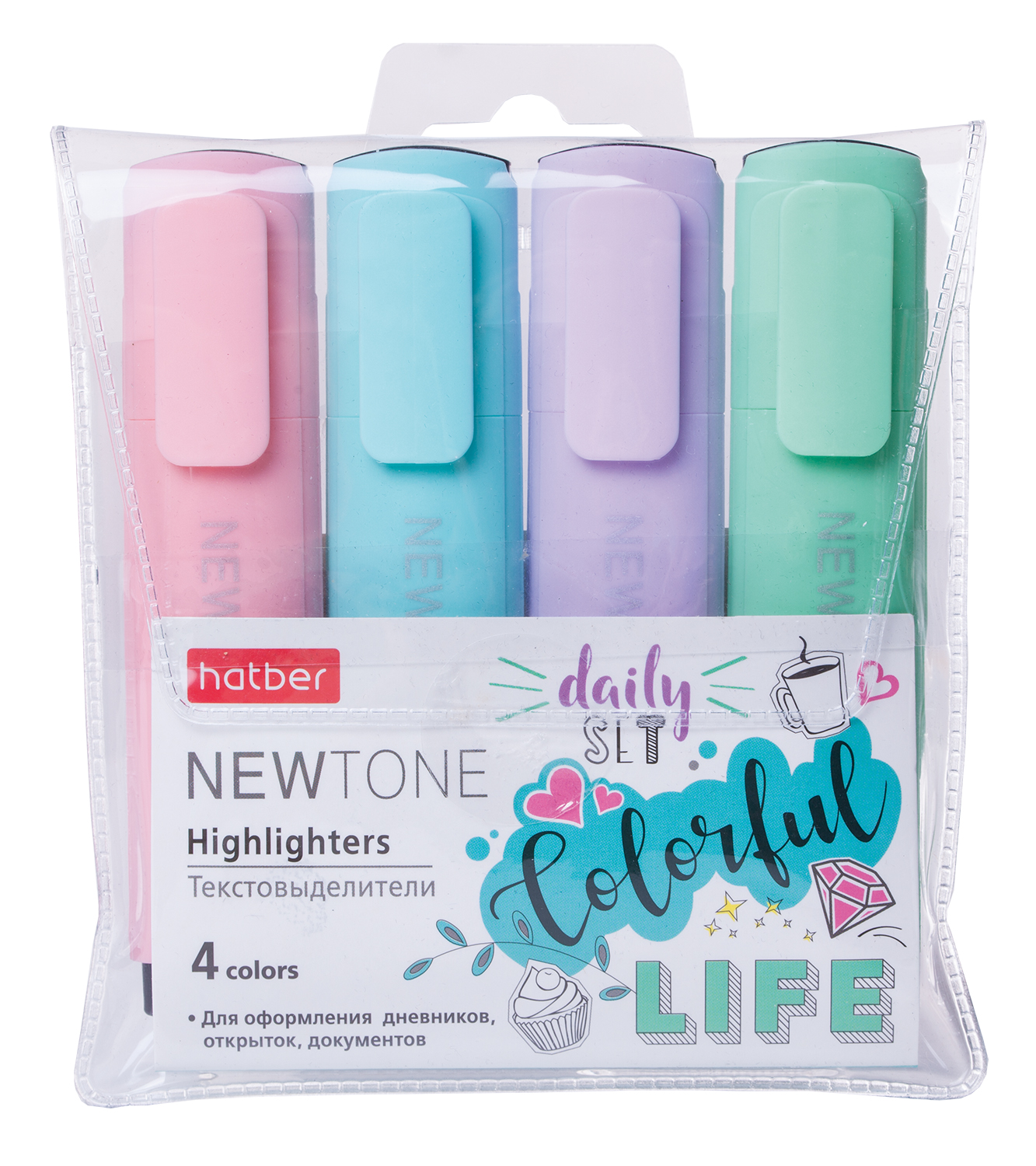 Для оформления документов, дневников, открыток и ежедневников идеально подходят текстовыделители NEWTONE PASTEL с пастельными чернилами. В ассортименте представлены 4 нежных цвета – бирюзовый, мятный, розовый и сиреневый.